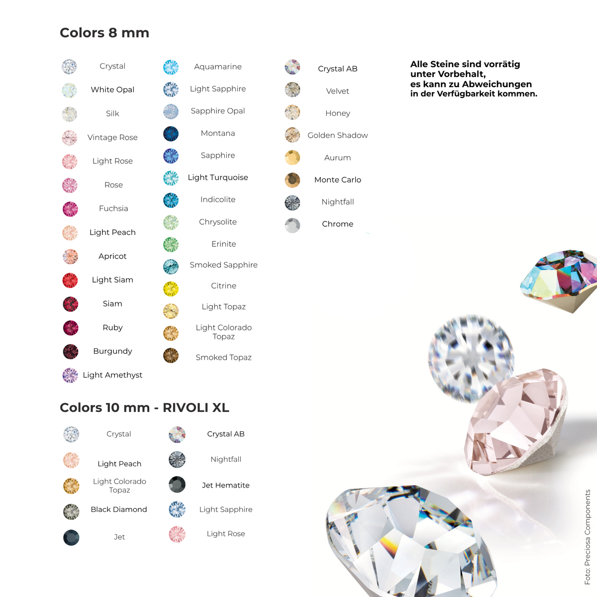 • mit Premium Kristall-Chatons (Ø 8 mm) oder mit Rivoli XL Steinen (Ø 10 mm)