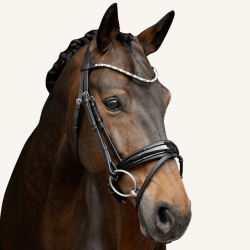 Als besonderer Blickfang tritt der Extra-Slim Stirnriemen mit hochwertigen Glaskristallen (Ø 6mm) und eleganter silberner Fassung auf - er schmückt ganz dezent die Stirn deines Pferdes.